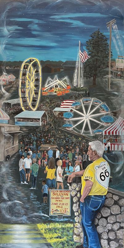Dedicated to: This mural is dedicated to the men and women who had the vision to form the Athletic Club in Sullivan on August 16, 1921. With private donations they purchased six acres of land for the purpose of building a baseball park.
